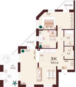 Продаётся 3-комнатная квартира в строящемся доме (Корпус 3), срок сдачи: II-кв. 2027, общей площадью 101.4 кв.м., на 1 этаже. Жилой комплекс бизнес-класса "РОЯЛТА" от застройщика "ГК ТОЧНО" в городе Ялта Республики Крым на улице Спендиарова.