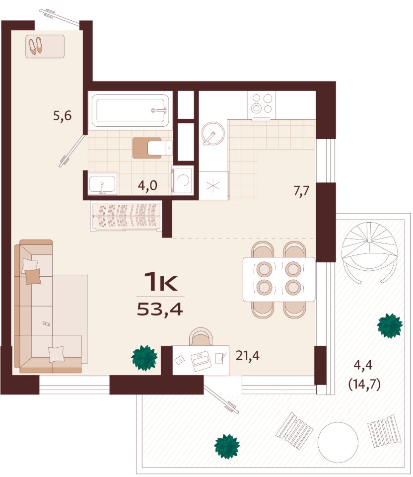 Продаётся 1-комнатная квартира в строящемся доме (Корпус 3), срок сдачи: II-кв. 2027, общей площадью 53.4 кв.м., на 4 этаже. Жилой комплекс бизнес-класса "РОЯЛТА" от застройщика "ГК ТОЧНО" в городе Ялта Республики Крым на улице Спендиарова.