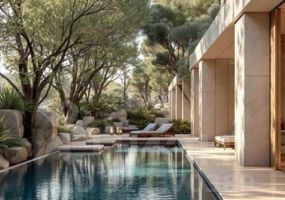 Инфраструктура для здоровья и отдыха: Бассейн с морской водой, SPA-центр площадью 1000 м², ресторан, парящие пешеходные мосты и зоны для релаксации с гамаками.