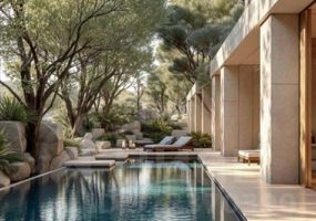 Инфраструктура для здоровья и отдыха: Бассейн с морской водой, SPA-центр площадью 1000 м², ресторан, парящие пешеходные мосты и зоны для релаксации с гамаками.