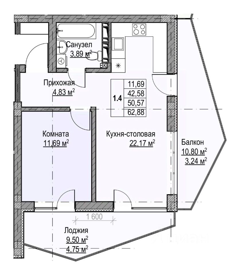 Продаётся 1-комнатная квартира в строящемся доме (Дом 3А), срок сдачи: II-кв. 2027, общей площадью 50.57 кв.м., на 4 этаже. Жилой дом от застройщика "Власта Инвест Крым" в городе ялта на улице И. Левитана.