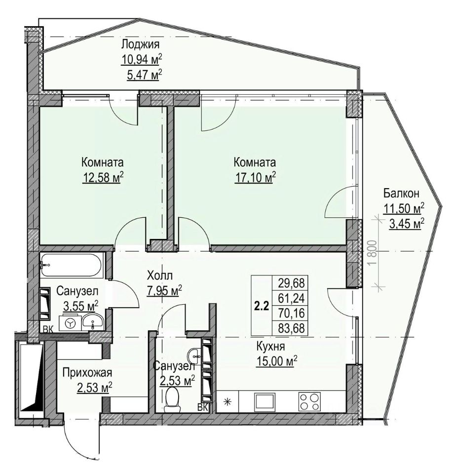 Продаётся 2-комнатная квартира в строящемся доме (Дом 3А), срок сдачи: II-кв. 2027, общей площадью 70.16 кв.м., на 5 этаже. Жилой дом от застройщика "Власта Инвест Крым" в городе ялта на улице И. Левитана.