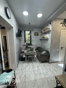 Общая площадь жилья составляет 40 квадратных метров и грамотно распределена между двумя комнатами площадью 12 и 15 квадратных метров, совмещенным санузлом в 3 квадратных метра и удивительно просторной кухней в 10 квадратных метров, где удачно выделены отдельные функциональные зоны. Высота потолков 2,8 метра добавляет ощущение воздушности и простора.