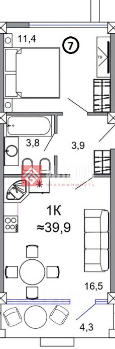 - Общая площадь: 40 кв.м., спальня + кухня-гостиная