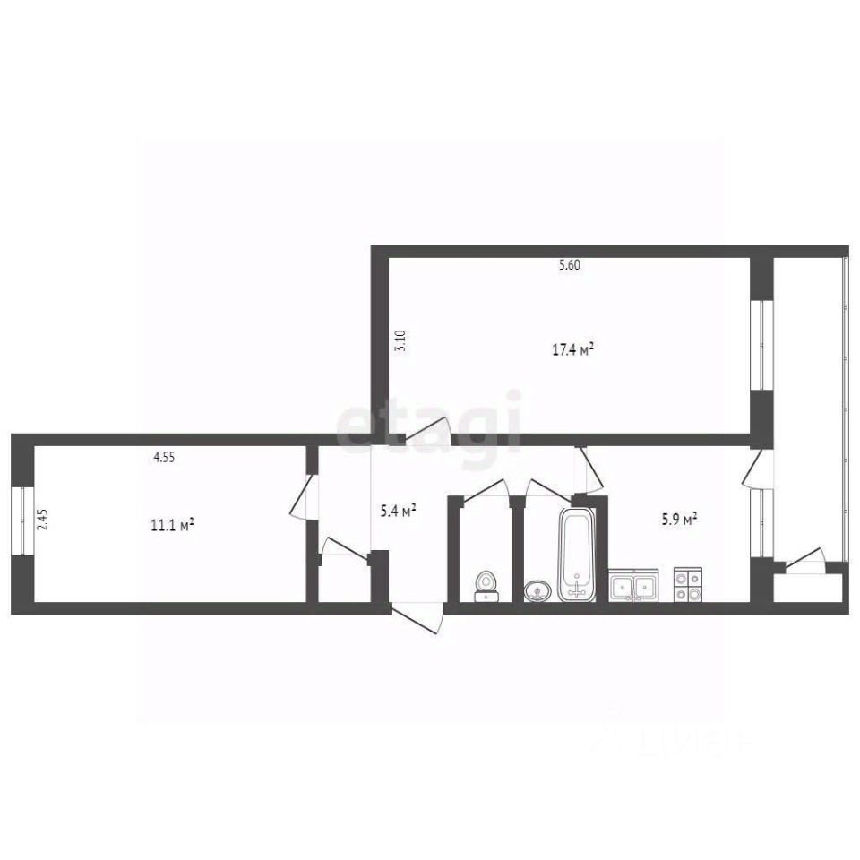 Объект отличается рациональной планировкой: две изолированные комнаты площадью 17,6 и 11,6 кв. м, раздельный санузел и оборудованная лоджия, что увеличивает полезное пространство.