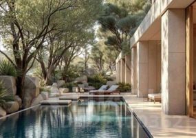 Инфраструктура для здоровья и отдыха: Бассейн с морской водой, SPA-центр площадью 1000 м², ресторан, парящие пешеходные мосты и зоны для релаксации с гамаками.