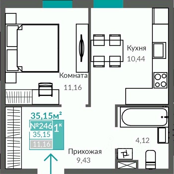 Общая площадь35,15 м²