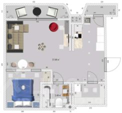 За счет грамотной планировки пространства квартиры мы выделили спальню в отдельную комнату и обустроили вместительную гардеробно / постирочную комнату. Отдельно хотелось бы остановиться на функциональном и удобном выходе с кухни на балкон: регулярное проветривание и возможность использования дополнительного пространства.