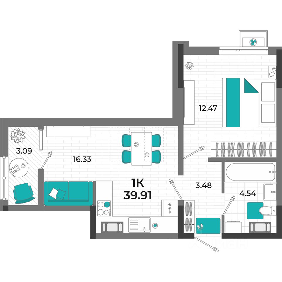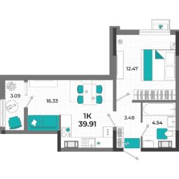 Общая площадь39,91 м²