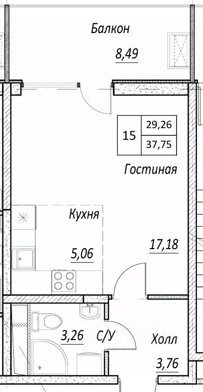 Продается апартамент-студия :