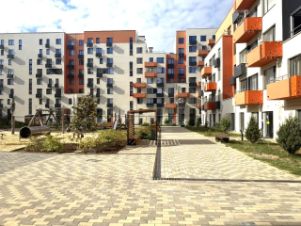 Благоустроенная придомовая территория, детские и спортивные площадки, прогулочные зоны.