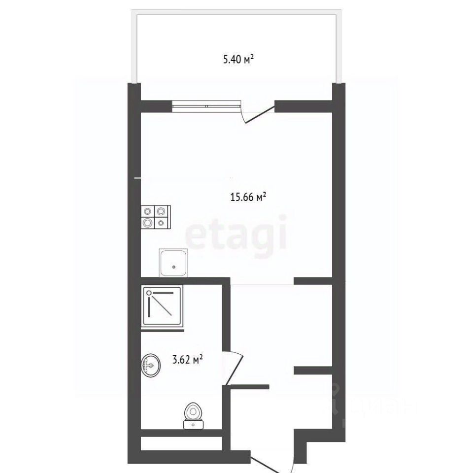 Студия площадью 24,7 кв.м. располагается на 3 этаже 12-этажного корпуса В, с прямым видом на море.