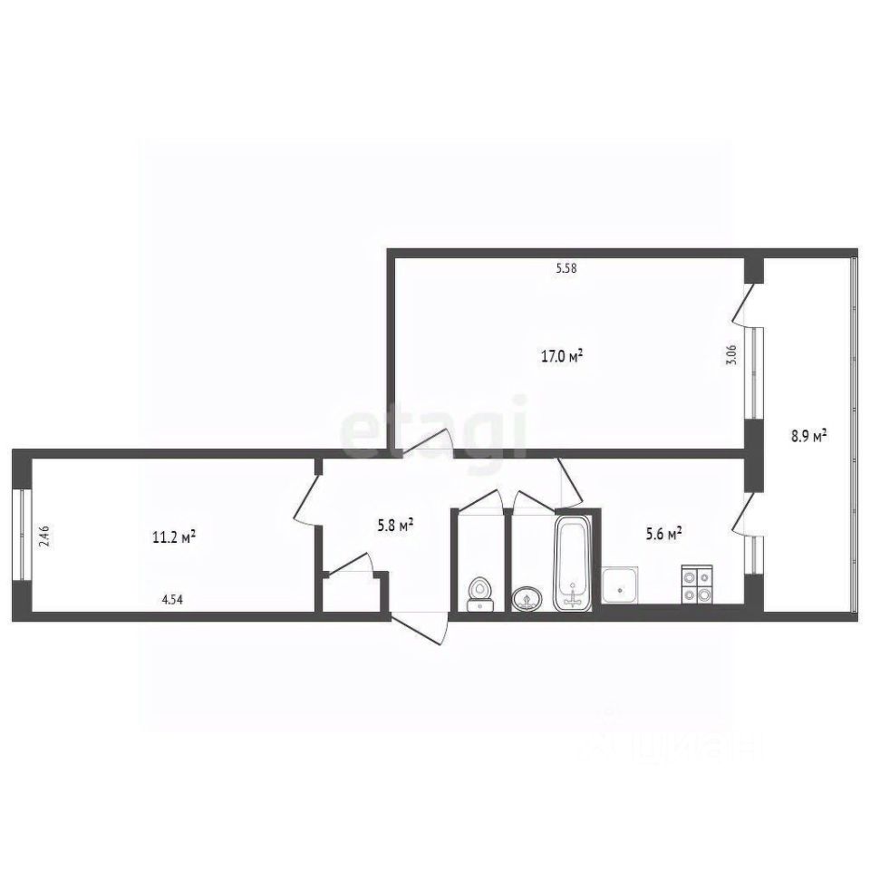 Планировка квартиры включает в себя: прихожую, раздельный санузел, кухню, две жилые комнаты, лоджию.