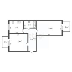 Планировка: прихожая, коридор, кухня - 8.4 м2, совмещенный санузел-ванная, зал-гостинная-17.9 м2, спальня-13.4 м2, два балкона.
