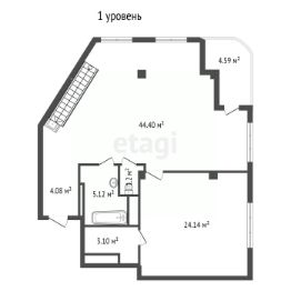Квартира общей площадью 89,7 кв.м. расположена на 8 этаже, на втором уровне открытая терраса площадью 64 кв.м. Планировка квартиры свободная - по желанию можно распланировать как двух- или трех-комнатную. Два санузла 5 кв.м. и 1.1 кв.м. Высота потолков 3 метра.