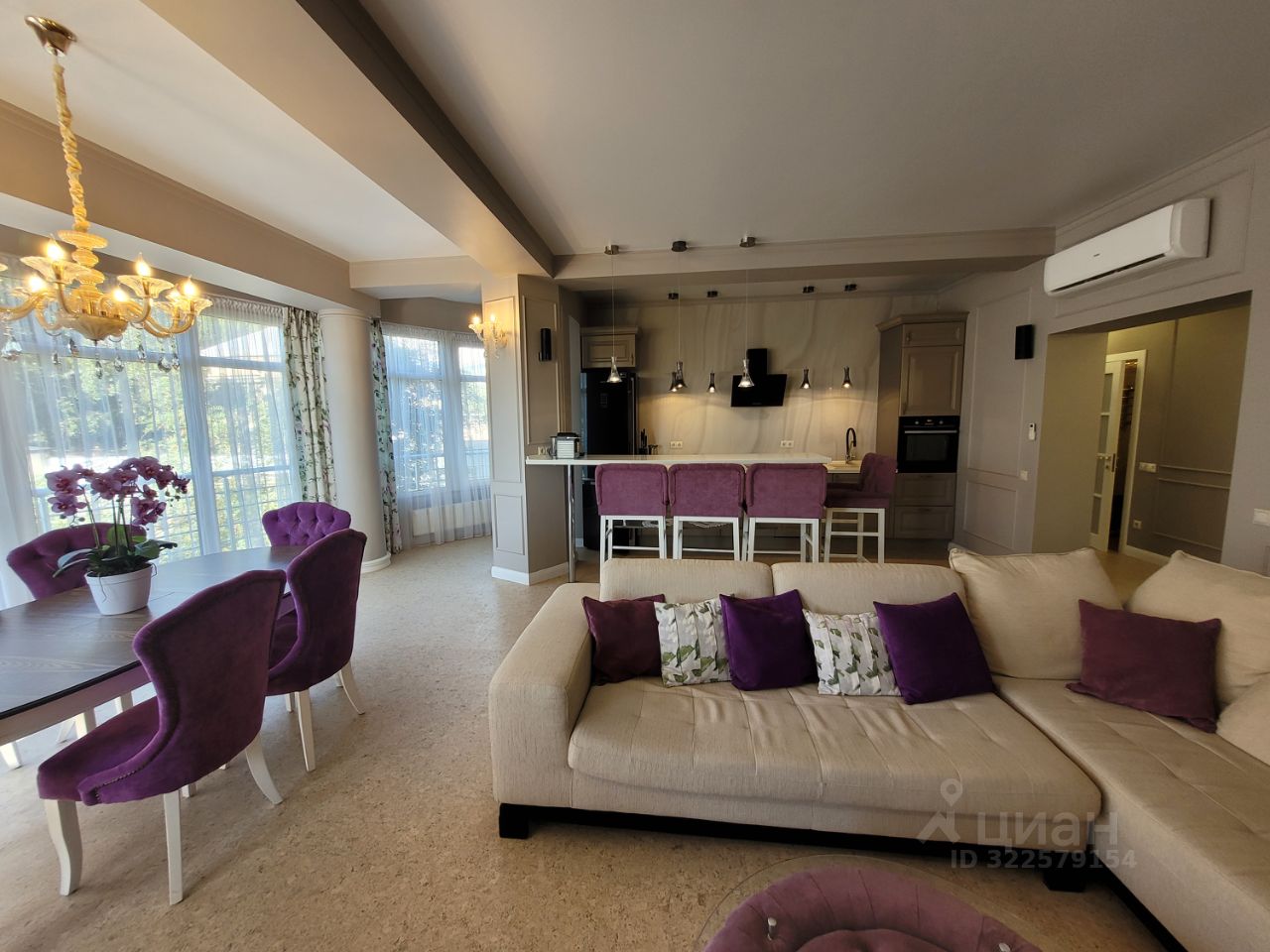 В квартире свежий ремонт в стиле "неоклассика" с использованием дорогих материалов, качественной мебели и техники.