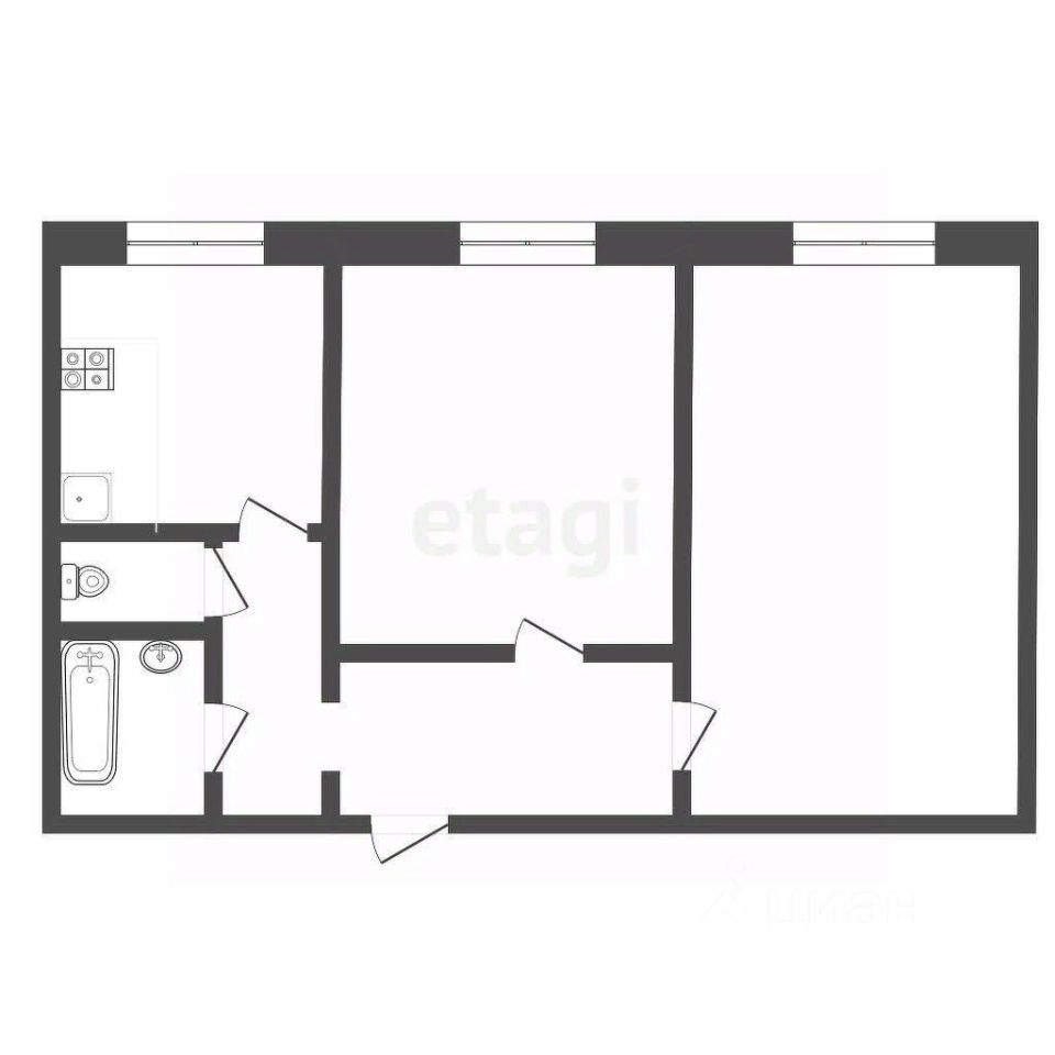 - Планировка (Евротрешка): просторная кухня-гостиная, 2 изолированные спальни, санузел, прихожая.