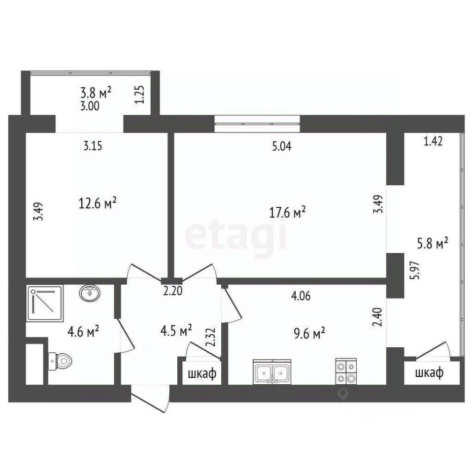 Квартира расположена на 1-ом этаже 12-ти этажного дома. Площадь жилых комнат 17.6 кв.м, 17.3 кв.м, 12 кв.м, просторная кухня 9.6 кв.м, совмещенный санузел, лоджия.