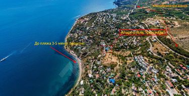 Расстояние до моря составляет не более пяти минут неспешной пешей прогулки. Апартаменты расположены на солнечной стороне и предлагают яркое естественное освещение в течение всего дня, а также обладают визуальным простором за счет грамотной планировки. В едином жилом пространстве удобно организованы зона для отдыха, отдельно выделены санузел с душевой кабиной. Из окон открывается приятный вид на окружающий ландшафт. Инфраструктура развита: в непосредственной близости расположены Воронцовский парк, объекты розничной торговли, медицинские учреждения и транспортная развязка.