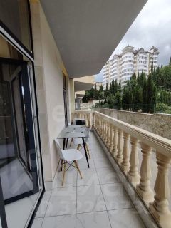 Панорамные окна и балкон выходят на озелененную территорию с кипарисами и оливами, обеспечивая приватность и постоянный контакт с природой.