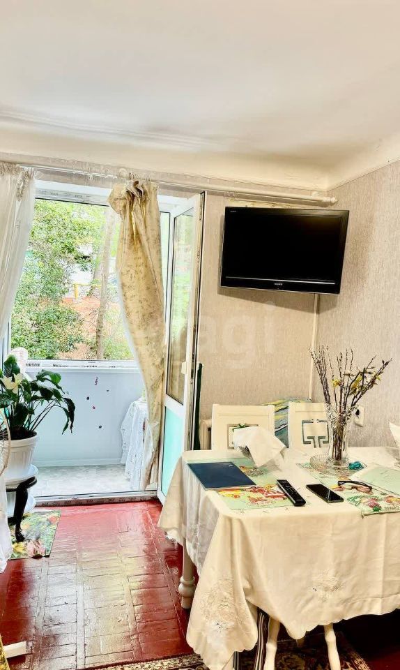 Двухкомнатная квартира площадью 46 м² расположена на втором этаже пятиэтажного дома в центре Ялты.