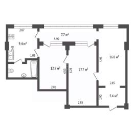 Кухня площадью 12 кв. м позволяет комфортно разместить обеденную зону и современную бытовую технику. В квартире выполнен косметический ремонт.