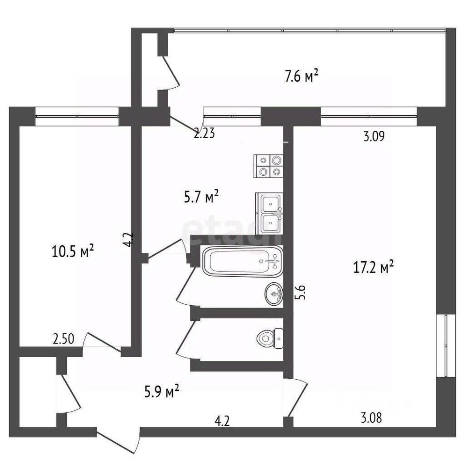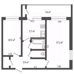 Двухкомнатная квартира площадью 51 м² расположена на 4 этаже пятиэтажного дома в одном из самых востребованных районов Ялты. Планировка продумана для комфортного проживания: просторный коридор (5,9 м²), отдельная кухня (5,7 м²), две изолированные спальни (10,5 м² и 17,2 м²) и лоджия (7,6 м²), которую можно использовать как дополнительное жилое пространство или зону отдыха.