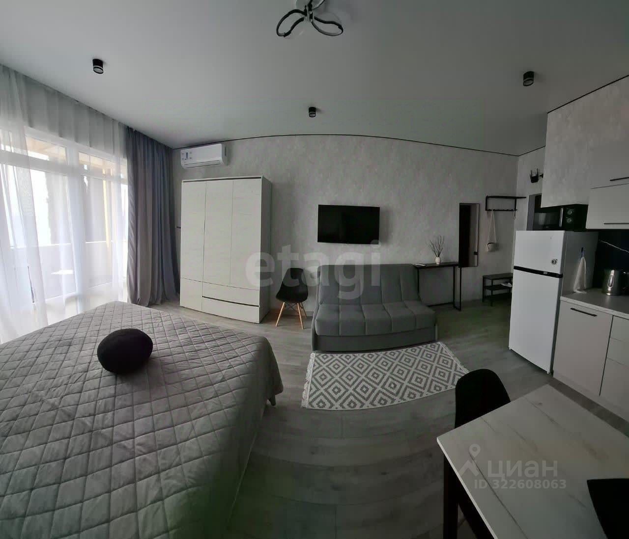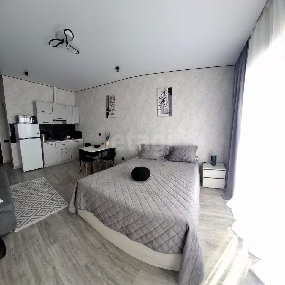 Апартаменты полностью укомплектованы для комфортного проживания. В спальной зоне — двуспальная кровать 160200 см с ортопедическим матрасом, дополнительное спальное место обеспечивает раскладной диван 150190 см. Кухонная зона оснащена необходимой техникой и посудой, ванная комната — стиральной машиной и набором банных принадлежностей, включая халаты и тапочки. В помещении установлен телевизор, предусмотрен шкаф для хранения белья.