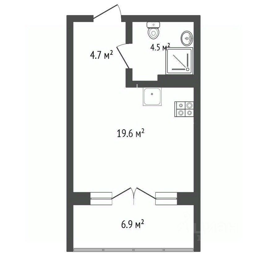 Продаётся 1-комнатная квартира-студия, 38.1 м²