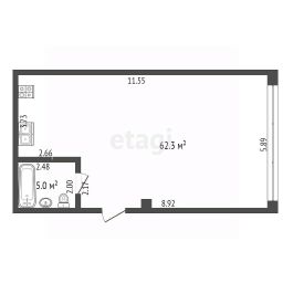 Просторная квартира площадью 67,3 кв.м с свободной планировкой расположена на первом этаже монолитного жилого дома в поселке Даниловка.