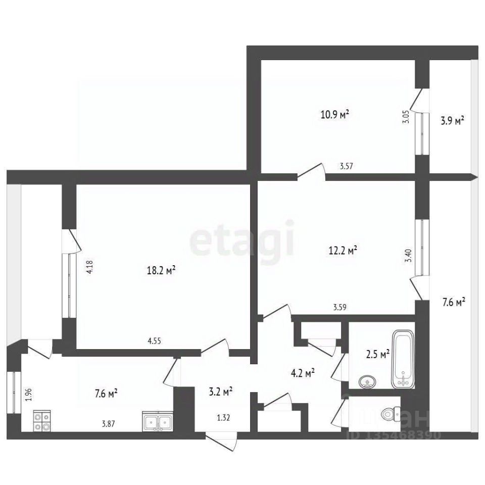 Три большие лоджии - по лоджии в каждой комнате. Централизованное водоснабжение и водоотведение.