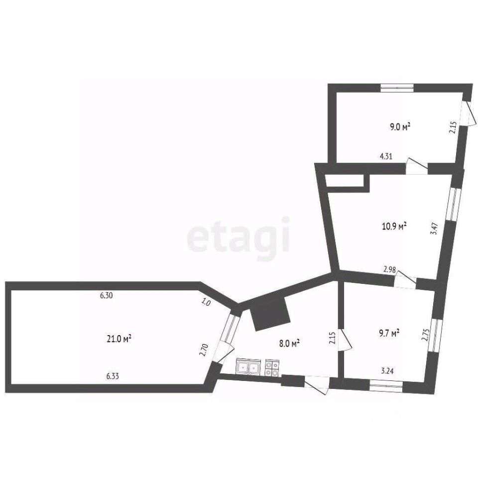 - Светлые помещения и просторная кухня — много естественного света благодаря удачному расположению.
