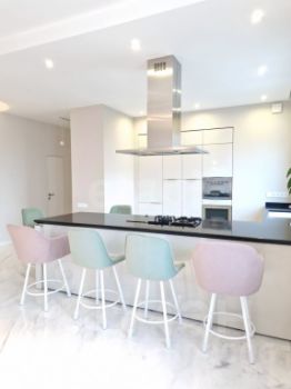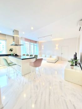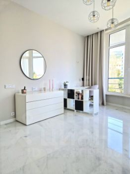 Квартира выполнена в современном дизайнерском стиле с использованием высококачественных материалов. Полы из натурального мрамора в общественных зонах и паркетная доска в спальнях создают атмосферу роскоши и уюта. Теплый пол добавляет комфорта в холодные дни, а большие окна наполняют пространство светом и воздухом.