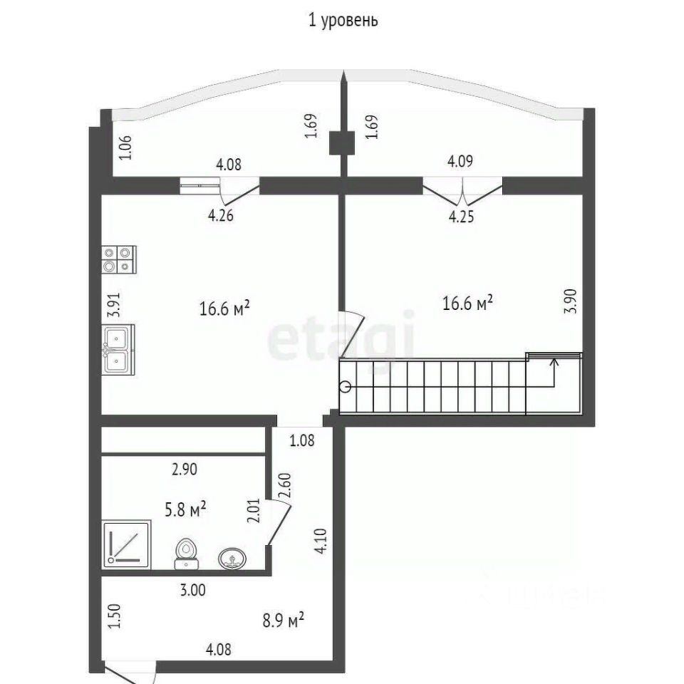 Cостоит из куxни гocтиной 20 м,кв cпaльни 12 м,кв,это пеpвый этaж.