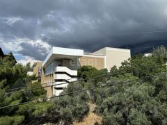 Дом монолитный, стены ракушечник. На участке три дома со своим садом из хвойных и оливковых деревьев, будет ландшафтный дизайн. Место тихое, спокойное