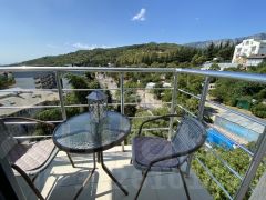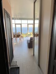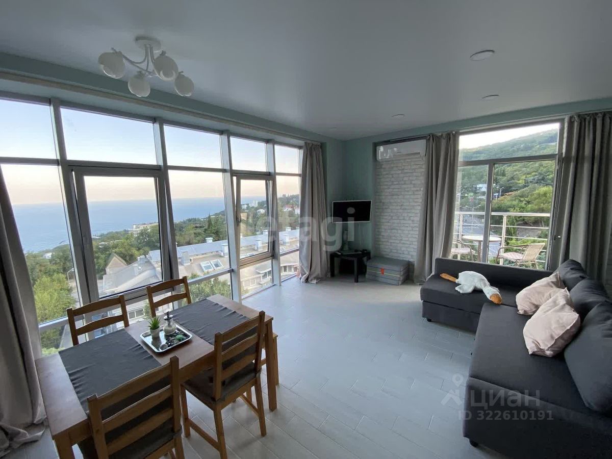 Продается видовая однокомнатная квартира в Ялте. Квартира расположена на 6 этаже 8-ми этажного дома. Общая площадь квартиры 40 м.кв. В квартире выполнен современный ремонт, планировка включает в себя: прихожую, кухню-гостинную, изолированное спальную комнату, совмещенный санузел и видовой балкон. Дом 2017 года постройки, квартира с панорамным остеклением и видом на город, горы и море. Квартира расположена в районе с развитой инфраструктурой, в шаговой доступности: магазины, рынок, кафе, аптека, остановка общественного транспорта. До пляжей 5 минут на авто и 20 минут прогулочным шагом.