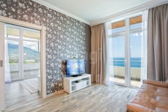 Продаётся видовая 2-х комнатная квартира в Ялте (район аквапарка "Атлантида". Квартира находится на 9 этаже современного ЖК "Ливадия SKY". В квартире выполнен качественный ремонт. Из всех панорамных окон открывается превосходный вид на Ялту горы и прямой вид на море. Квартира очень светлая. Уникальность квартиры в её просторной террасе. Выход на террасу из всех комнат квартиры.