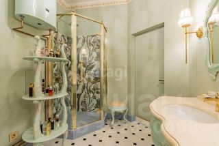 Что касается наполнения интерьера- использовалась как итальянская мебель, так и мебель фабрики Romano Home. Все потолки украшены обилием гипсовой лепнины с художественным декорированием, нежным золочением и патинированием. Стены оформлены премиальной итальянской декоративной штукатуркой и обилием ручной росписи (масло) в стиле старинных европейских интерьеров. Испанская плитка, итальянская паркетная доска, сантехника Lineatre и Boheme, комплект мебели в ванную Bianchini&Capponi, стилизованная техника Kuppersberg - большинство использованных премиальных отделочных материалов уже не доступны к заказу на российском рынке.
