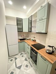 Квартира полностью меблирована: кухня, холодильник, стиральная машина, диван-кровать, гардероб и готова к проживанию.
