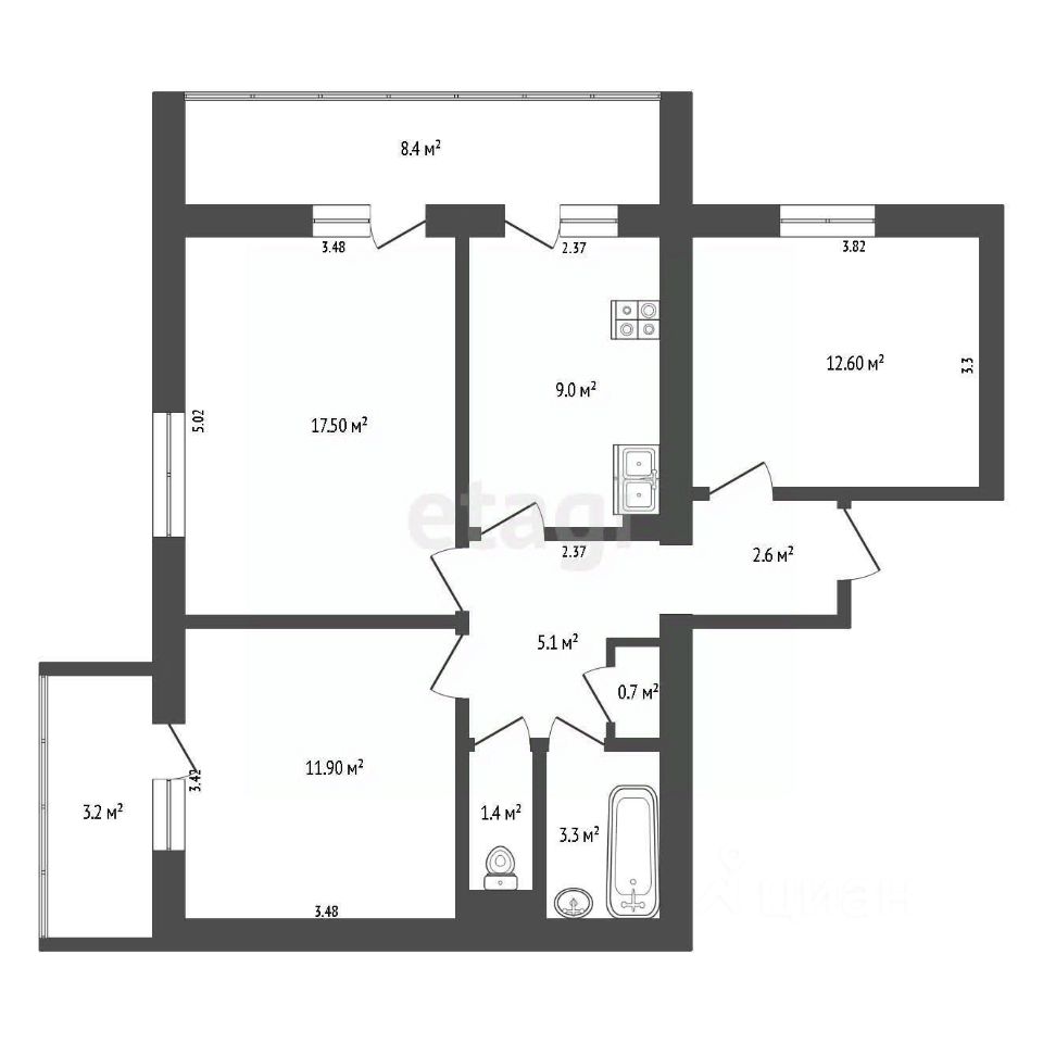Кухня 9 м.кв, балкон 8,4 м.кв, балкон 3,2 м.кв. Большая лоджия и балкон, застеклены, стеклопакеты современные. Планировка включает в себя: прихожую, 3 комнаты, кухню, раздельный санузел, балкон, лоджию. В шаговой доступности школа, детский садик, хозяйственные и продуктовые магазины, аптека, отделение почты, остановки общественного транспорта, спортивная площадка, парк и замок "Ясная Поляна". Во дворе есть парковочные места. Спуск до моря занимает 5 минут.
