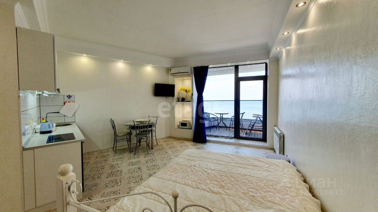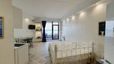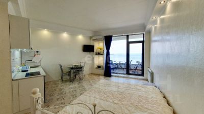 Продается студия общей площадью 37 кв. м на четвертом этаже современного шестиэтажного дома.В квартире выполнен современный ремонт. Остеклена энергосберегающими алюминиевыми оконными системами. Благодаря панорамному остеклению в квартире всегда много света и воздуха. Из окон, а также с южного открытого балкона квартиры открывается прекрасный панорамный вид на море и зелень Мисхорского парка. В квартире сделан хороший свежий ремонт: новая мебель, качественная современная сантехника. В квартире установлен современный электробойлер, вместительная стиральная машина, небольшой холодильник, кондиционер. По всей квартире смонтирован электрический теплый пол. Всего в 300 м от дома начинается территория Мисхорского парка, площадью 20 Га. Прогулка к пляжу через парк займет не более 20 мин. Дорога до центра Ялты и Набережной займет 15 мин на машине (12 км), до знаменитого Воронцовского дворца 2,5 км. Статус объекта "Квартира", возможна прописка. Коммунальные платежи по счетчикам в соответствии с общегородскими квартирными тарифами.