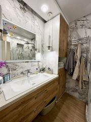 В квартире выполнен дизайнерский ремонт, имеются тёплые полы.