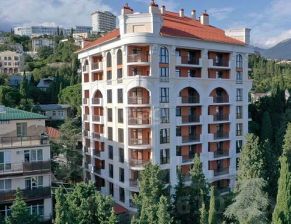 Продается квартира в городе Ялта. Находится в новом 8-этажном доме, построенным в стиле модерн. Площадь - 44.2 кв.м + балкон 10.4 кв.м. Вид из квартиры открывается на море. В квартире сделана чистовая отделка стен, электропроводка, заведены трубы отопления, стоит двухконтурный газовый котел. В квартире массивная входная дверь, панорамные окна, кованые перила балкона. В доме есть лифт и помещение для колясок.