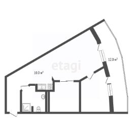 Планировка представляет собой светлую, просторную кухню-гостинную с панорамными окнами, изолированною детскую, спальню отделенную дизайнерской алюминиевой перегородкой с коленными стеклами и совмещенный сан узел.