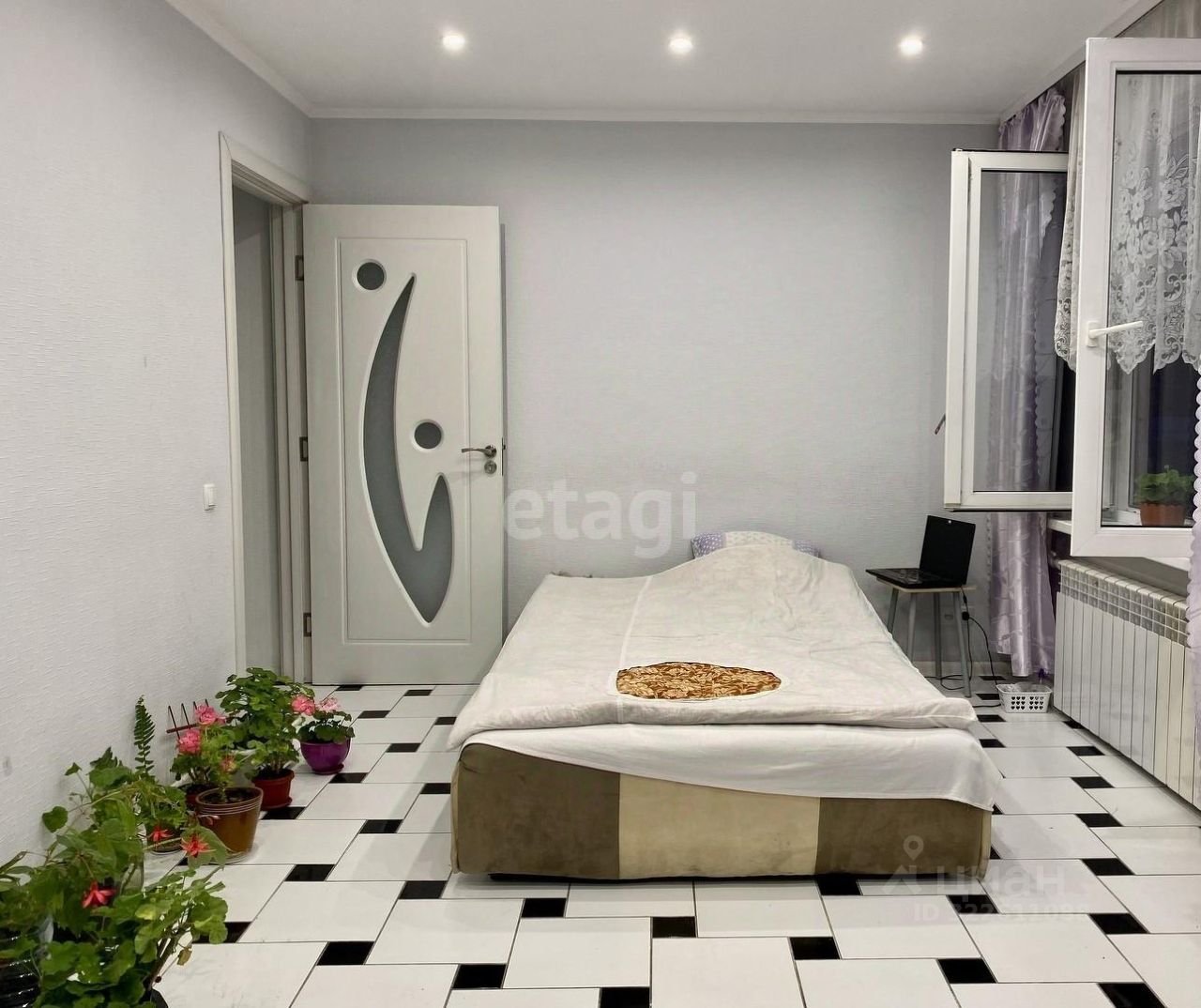 Квартира с ремонтом, расположена на 1 этаже 5-этажного дома, оборудована необходимой для проживания мебелью и техникой. На лоджии расположена кухня, вторая часть обустроена спальным местом. Санузел совмещен.