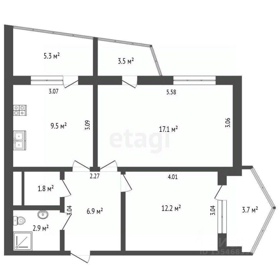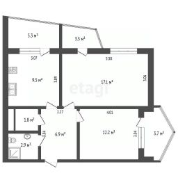 Объект отличается рациональной планировкой с изолированными комнатами, одна из которых имеет выход на балкон. Просторная кухня также оборудована балконом, что позволяет организовать дополнительную зону для отдыха или приема пищи.