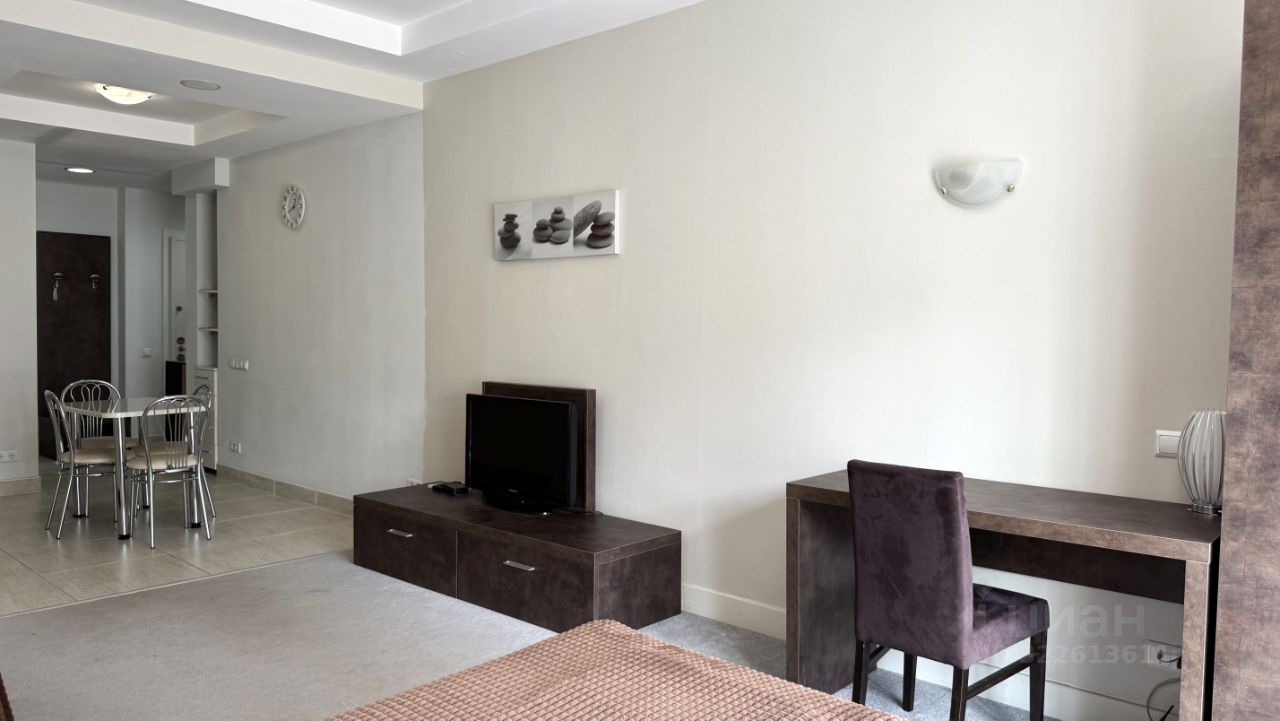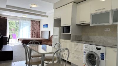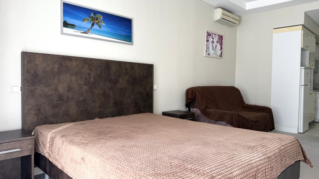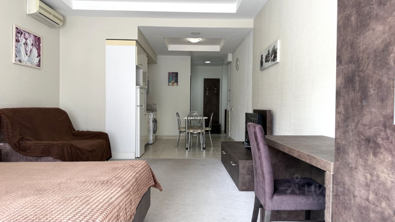 Планировка апартамента включает единую просторную спальную зону и зону кухни; прихожую; совмещенный санузел и открытый балкон. Комфортная вместимость - 4 человека.
