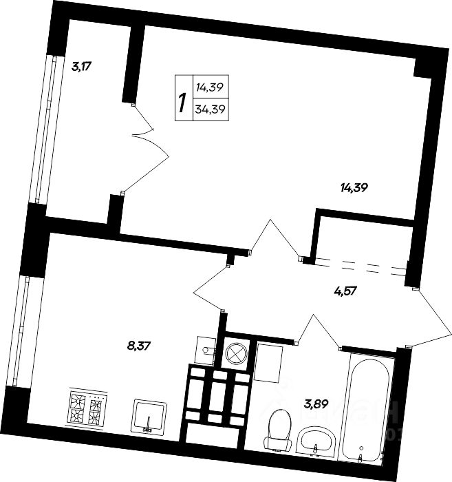 Продаётся 1-комнатная квартира в строящемся доме (Корпус 1), срок сдачи: II-кв. 2027, общей площадью 34.39 кв.м., на 9 этаже. "Парковые кварталы" - новый объект от "ИнтерСтрой"