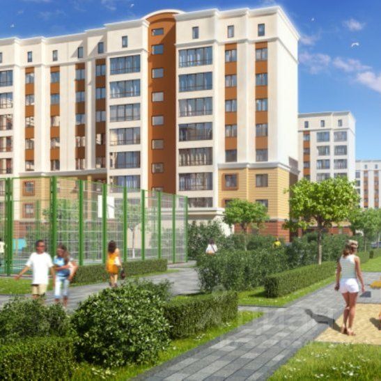 Ухоженные газоны, живые изгороди, деревья. Пространство двора предусматривает комфортное времяпровождение детей разного возраста: зоны для малышей до 3 лет, площадки для детей дошкольного и младшего школьного возраста. Выделены зоны для активного досуга: спортивные площадки, 2 больших поля с искусственным газоном и беговыми дорожками; прогулочная зона зелёная аллея.