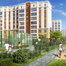 Ухоженные газоны, живые изгороди, деревья. Пространство двора предусматривает комфортное времяпровождение детей разного возраста: зоны для малышей до 3 лет, площадки для детей дошкольного и младшего школьного возраста. Выделены зоны для активного досуга: спортивные площадки, 2 больших поля с искусственным газоном и беговыми дорожками; прогулочная зона зелёная аллея.